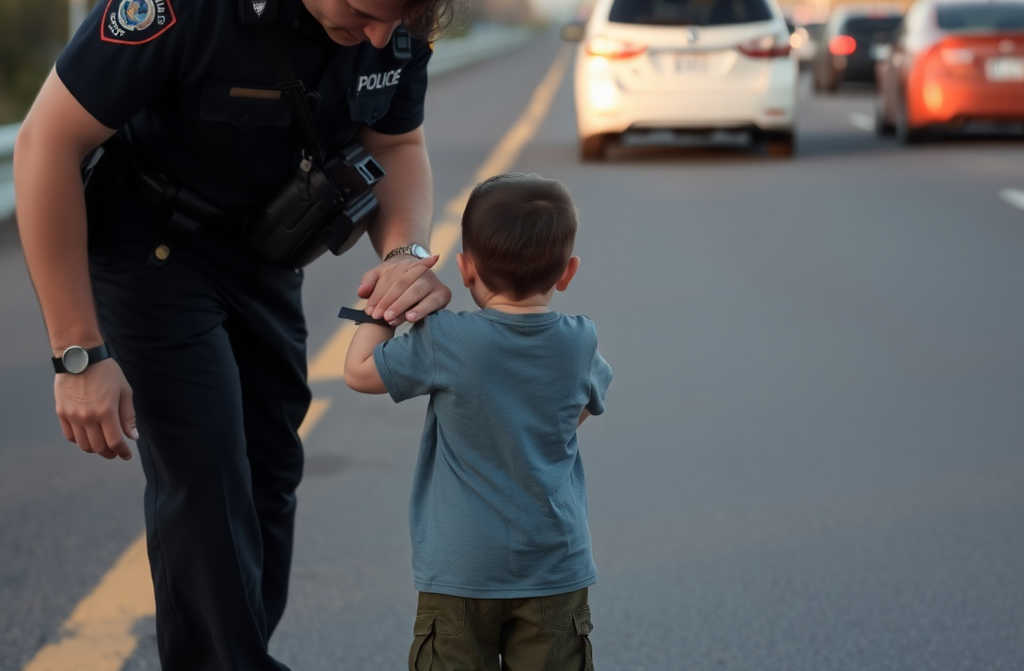 Cuando el agente lo vio, su primer pensamiento fue que el pequeño podía ser un niño sin hogar. Inmediatamente detuvo el coche patrulla, bajó y se acercó con cuidado.