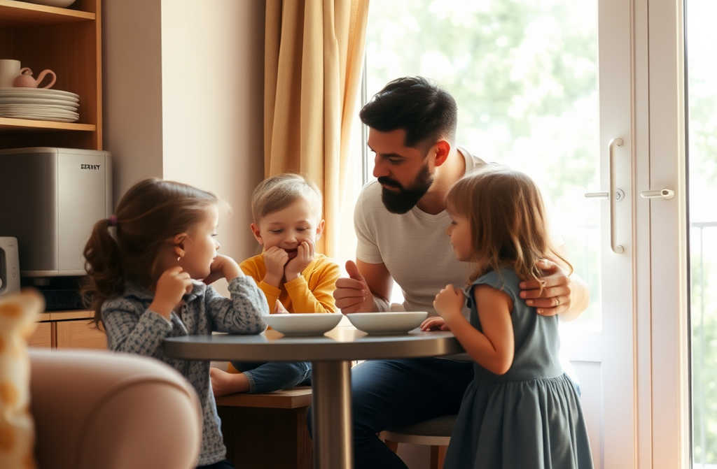 “Buenos días”, dijo Daniel, ofreciéndoles un plato a cada una. “Podéis quedaros aquí hasta encontrar a vuestro padre, ¿vale?”