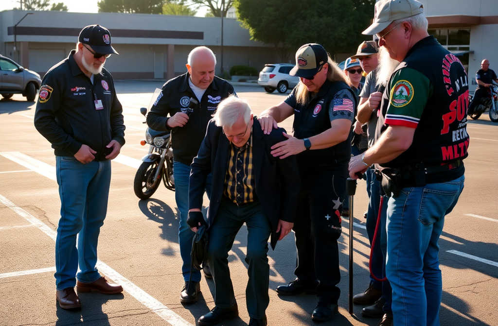 El punki abofeteó al veterano con tanta fuerza que su audífono salió volando por el aparcamiento, sin saber que cuarenta y siete motoristas observaban desde dentro.