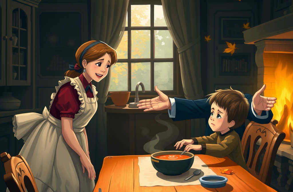 Se detuvo en seco al ver la escena: su ama de llaves, pálida, y un niño harapiento comiendo en un plato de la vajilla familiar.